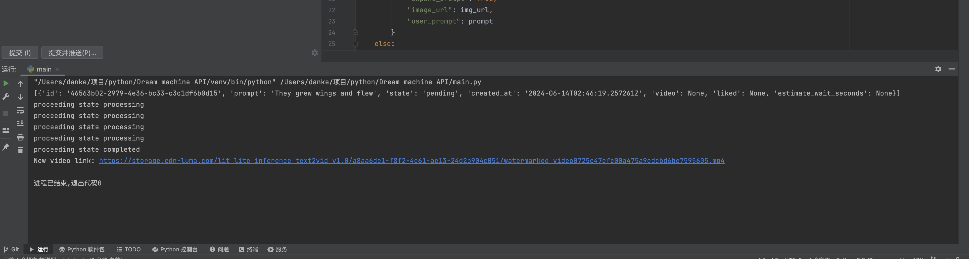 git clone https://github.com/danaigc/DreamMachineAPI.git cd DreamMachineAPI pip install -r requirements.txtYou need to replace the value of the access_token variable to make sure the project works