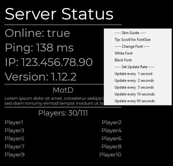 A lightweight rainmeter skin to visualize query information of a minecraft server build around mcstatus