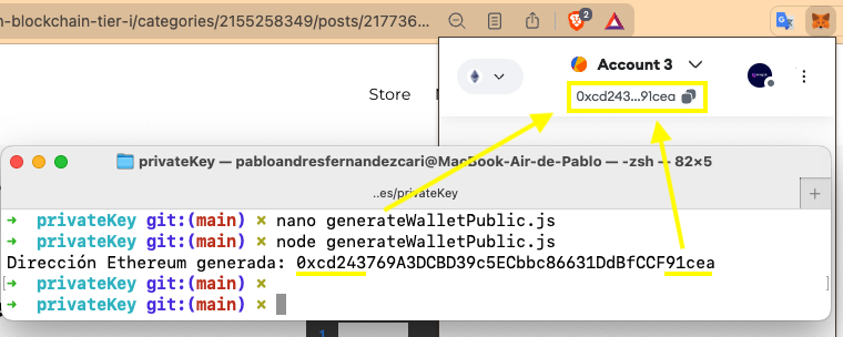 Podemos verificar que la dirección generada es la misma que la que nos muestra MetaMask.