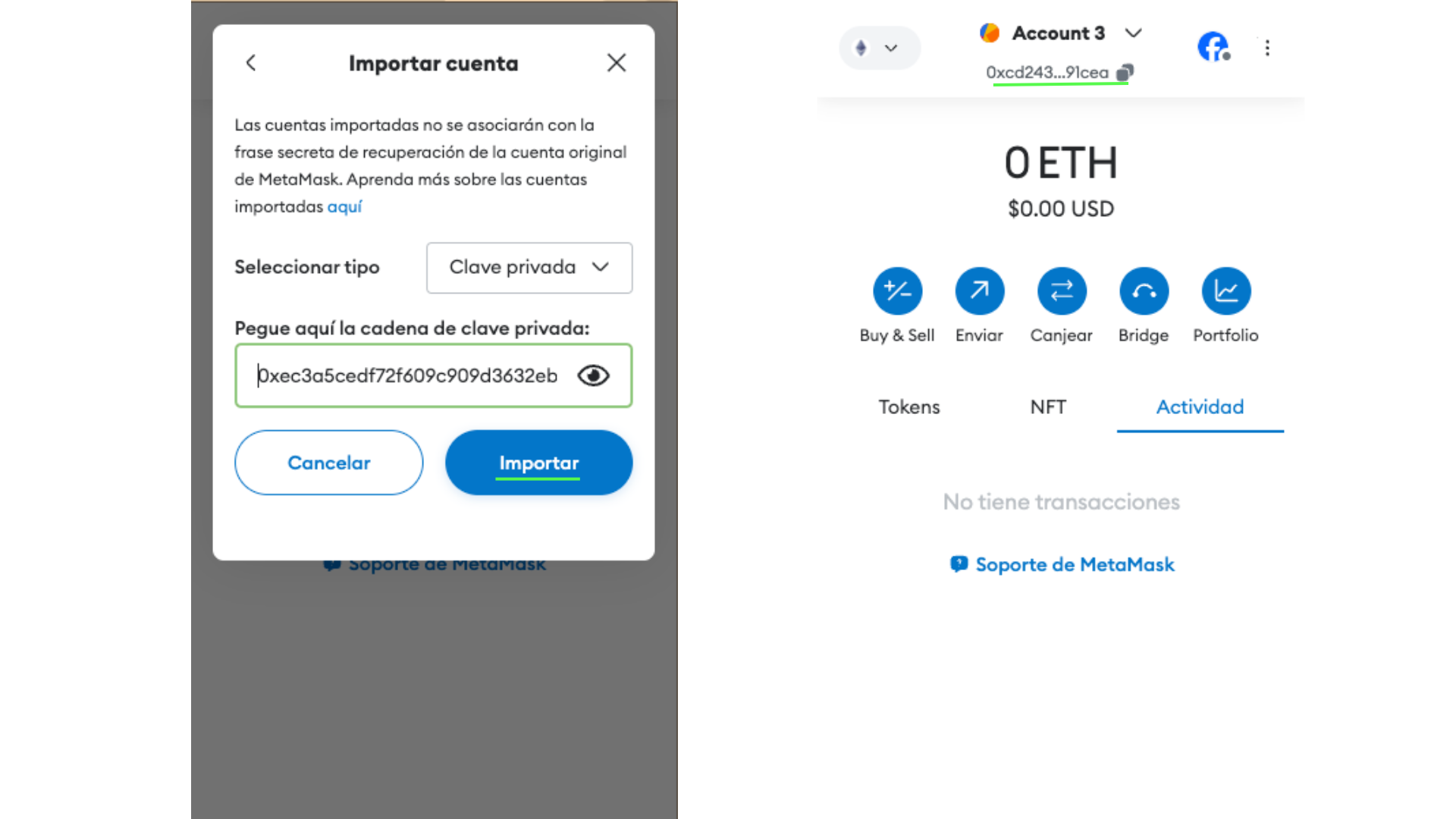 - Nunca compartas tu clave privada.