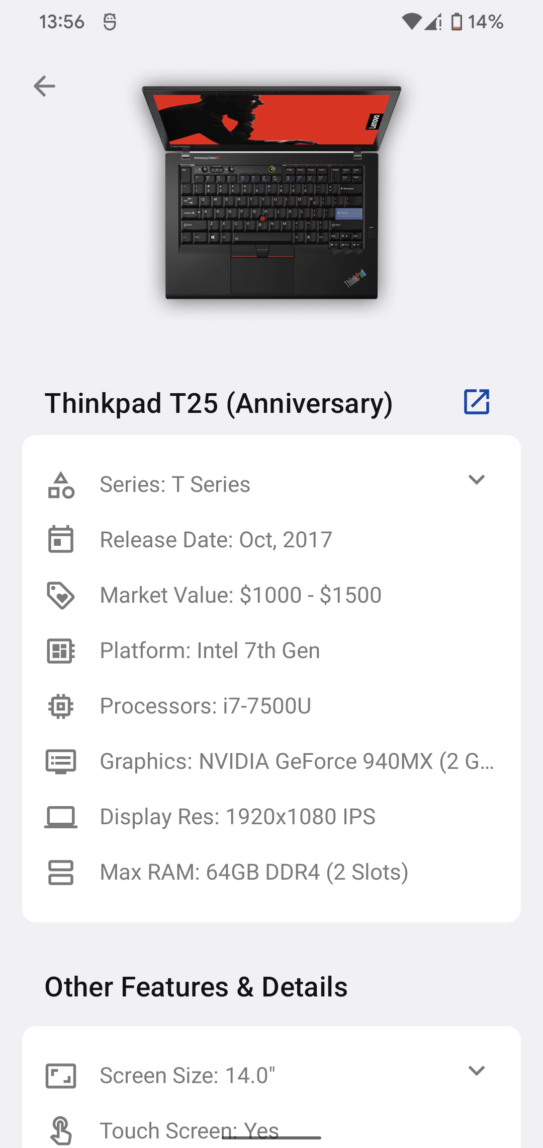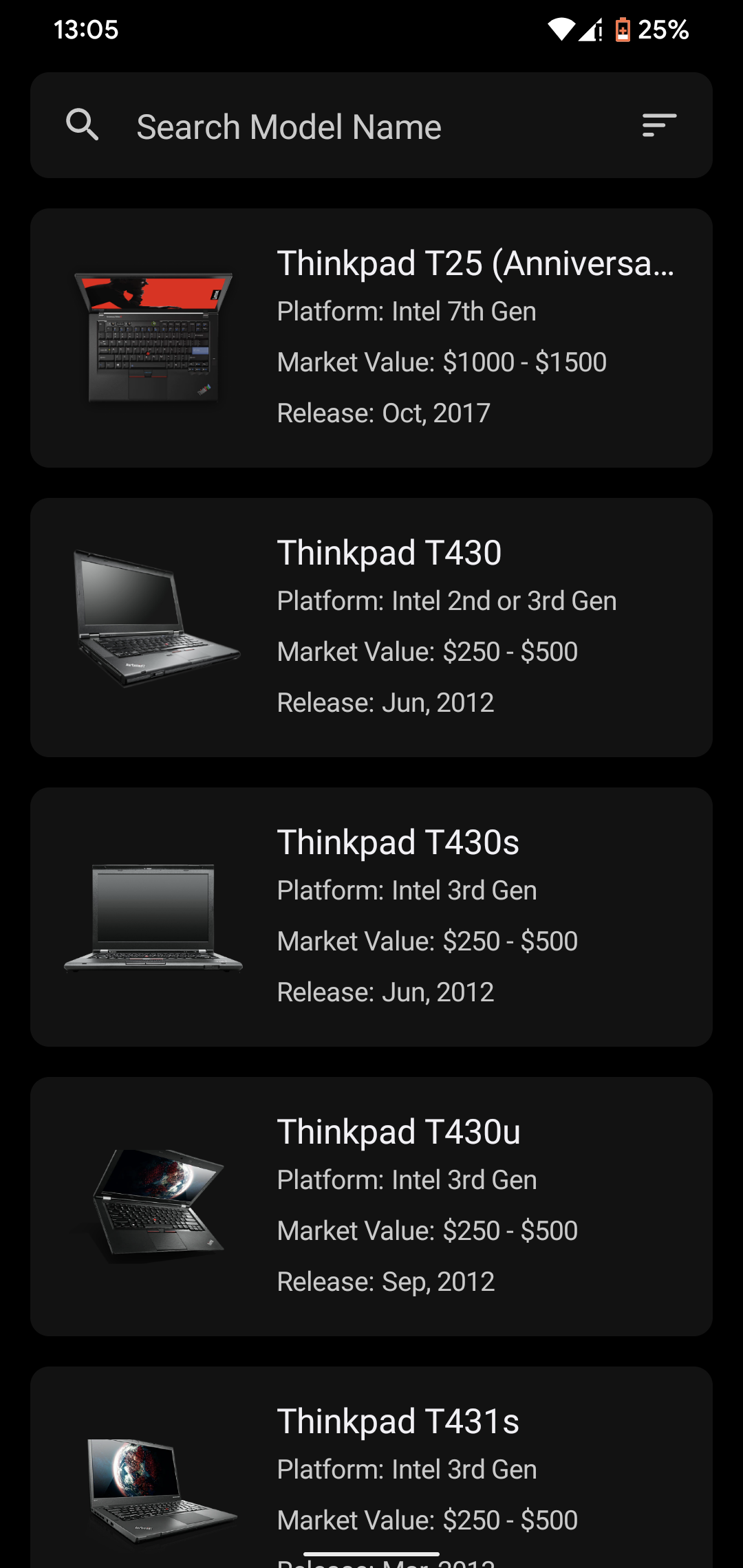 ThinkRhcive - An app showing all details for various Lenovo Thinkpad models.