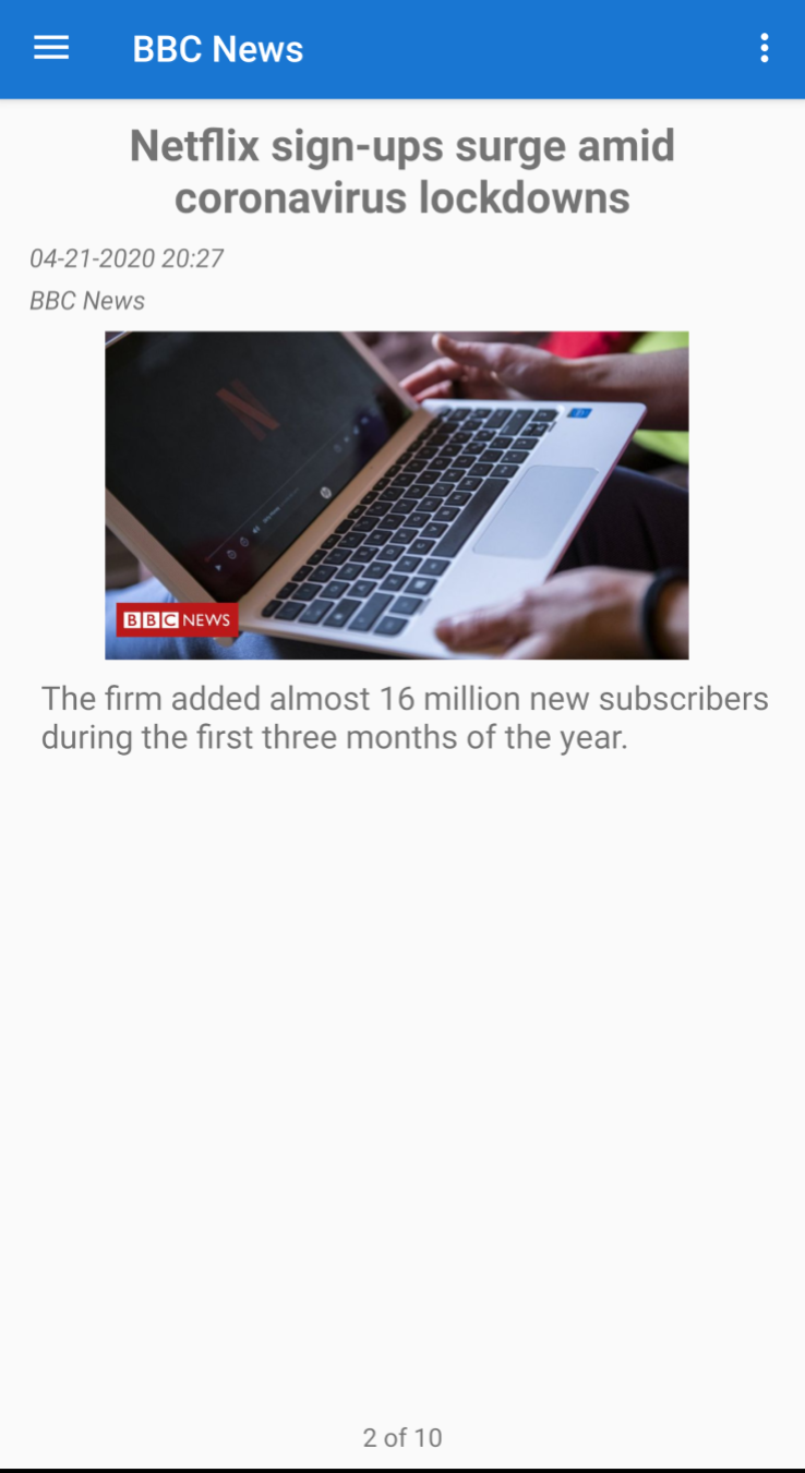 Clicking on a source will open the top 10 articles from that source in a view pager that you can swipe through.