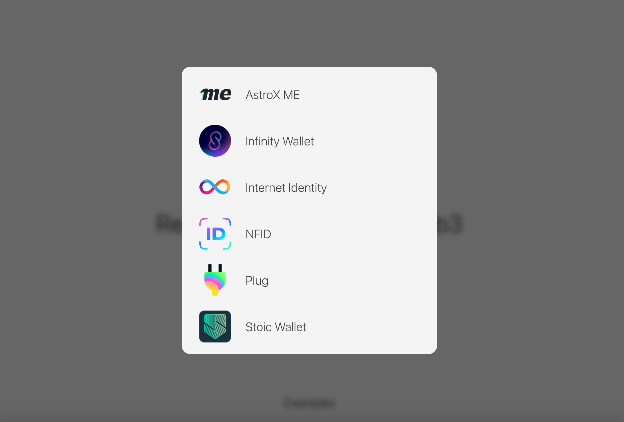 A toolkit which makes it trivial to support any wallet or identity provider, and make authenticated calls to canisters.