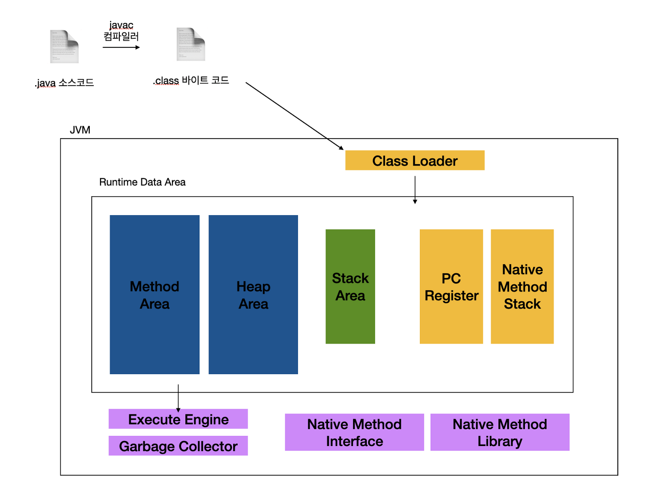 - 자바 바이트 코드(.class)를 메소드 영역에 저장한다.