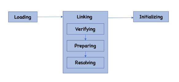 준비 : 클래스가 필요로하는 메모리를 할당하고, 클래스에서 정의된 필드, 메소드, 인터페이스를 나타내는 데이터 구조를 준비한다.