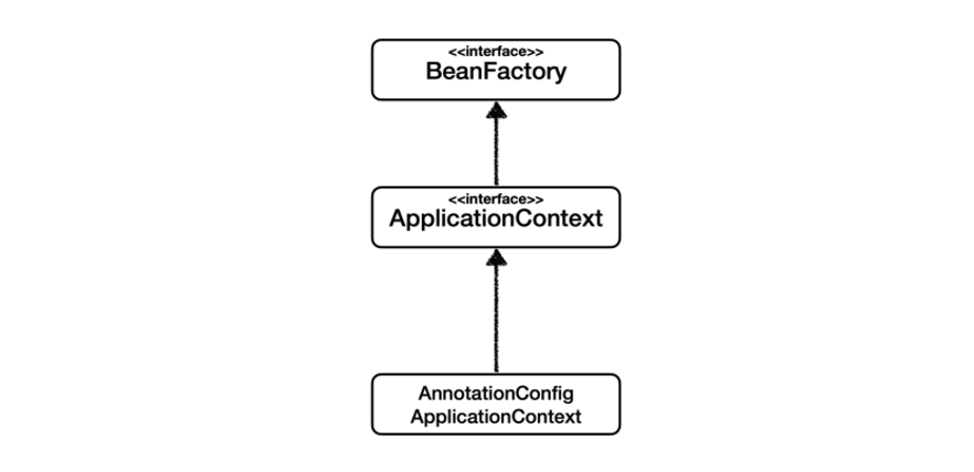 스프링 컨테이너의 종류는 BeanFactory와 이를 상속한 ApplicationContext 2가지 유형이 존재한다. BeanFactory를 직접 사용하는 경우는 거의 없으므로 일반적으로 ApplicationContext 를 스프링 컨테이너라 한다. 단,ApplicationContext는 BeanFactory를 상속받고 있다.