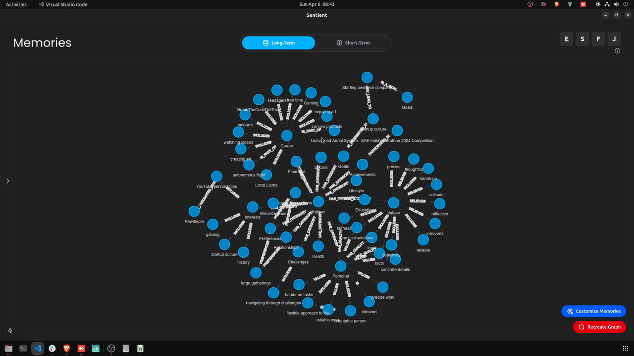 - Self-Managed Memory - Sentient can learn about the user from their interactions with it. Long-term memories are saved in a knowledge graph, while short-term memories are saved in a relational database.