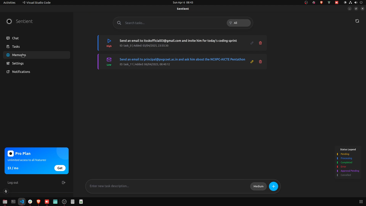 - Mobile Companion App - Mobile app will be added to allow users to access Sentient from even more devices. Even more context can be added for Sentient from the phone's push notifications, mic, etc.