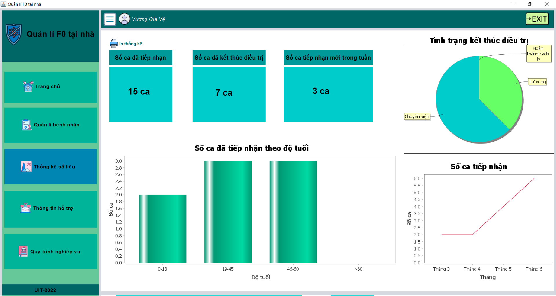 - Cán bộ nhân viên y tế có thể xem các thông số thống kê tự động, xuất báo cáo nếu cần