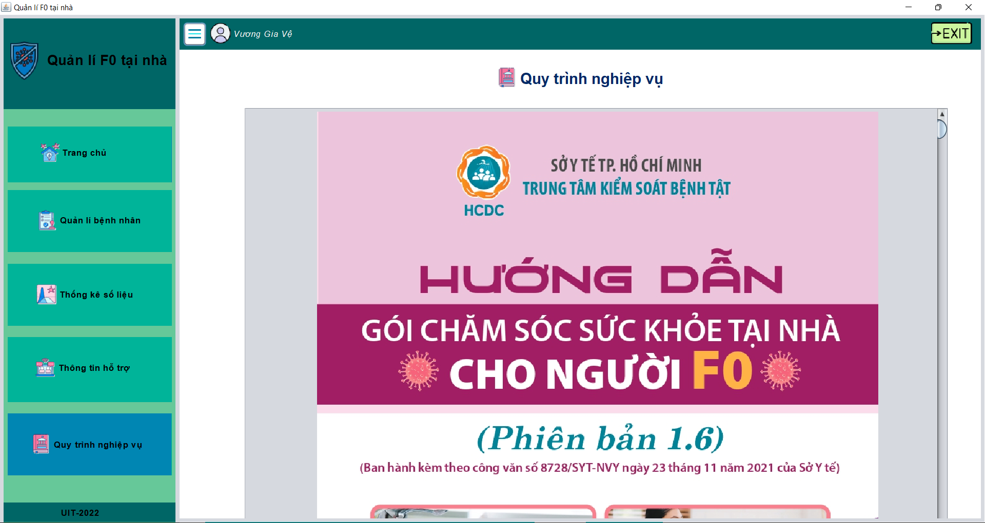 - Xem thông tin sơ lược về quy trình nghiệp vụ chăm sóc, xử lí bệnh tình F0 tại nhà.