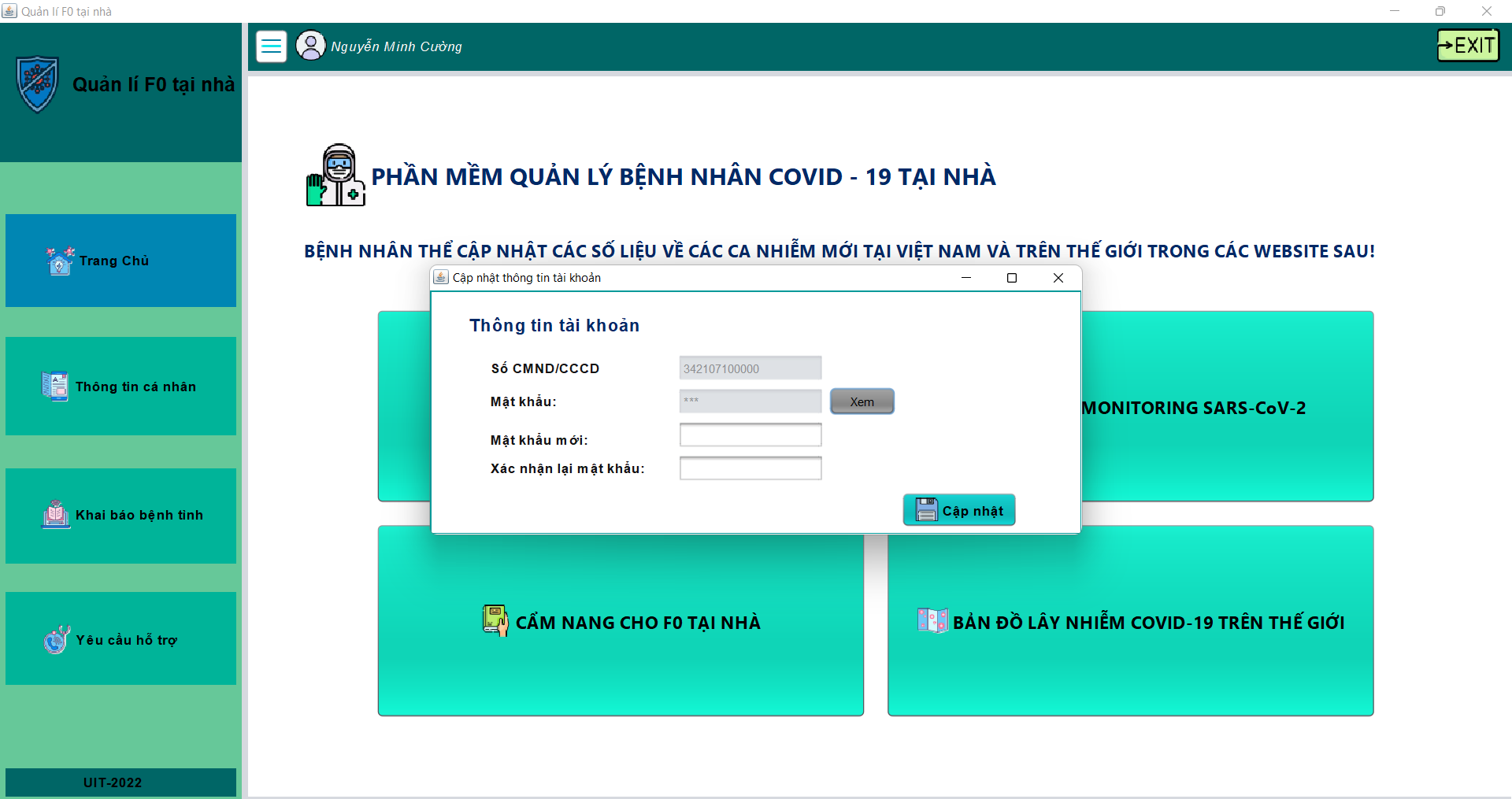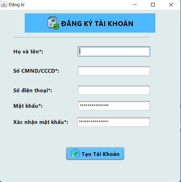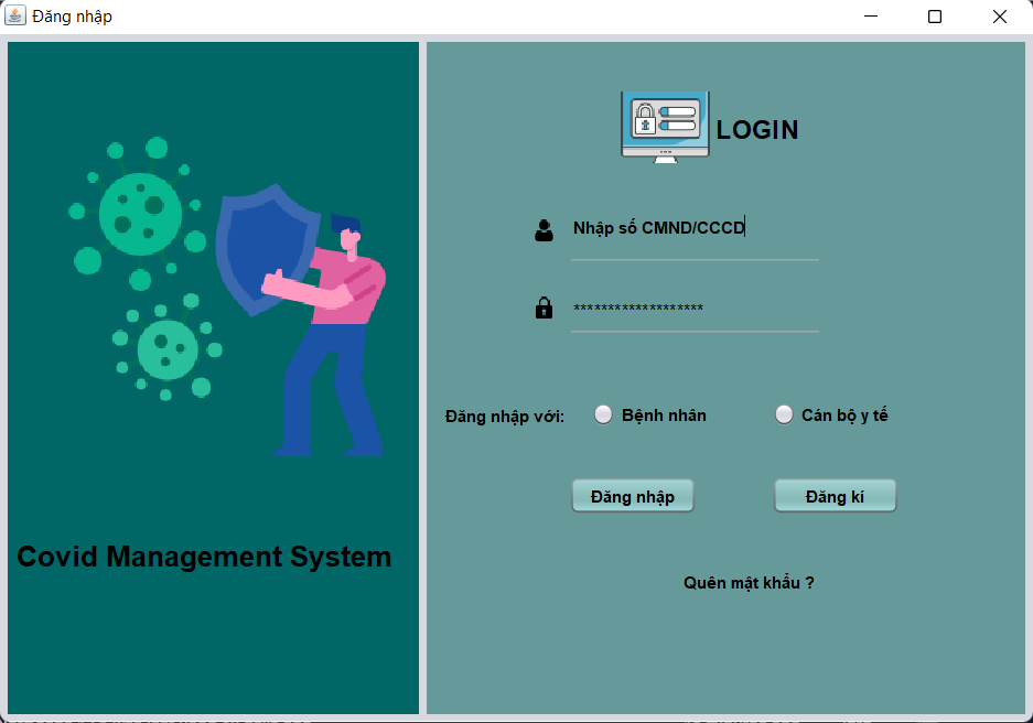 - Người dùng sẽ dùng tài khoản đăng nhập vào hệ thống với tài khoản là Số CMND/CCCD