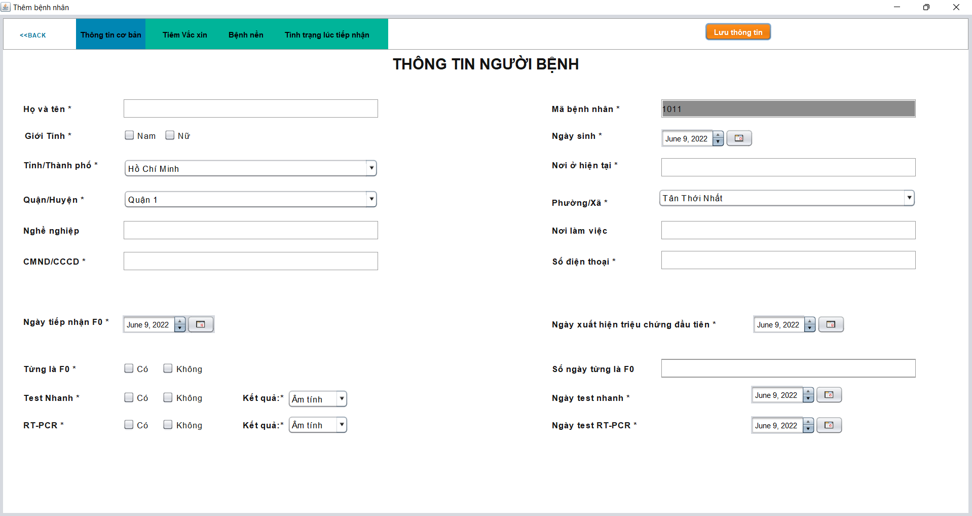 - Bệnh nhân sẽ có thể đăng kí tài khoản ( nếu chưa được cán bộ y tế thêm ), khai báo thông tin cá nhân và các thông tin liên quan.