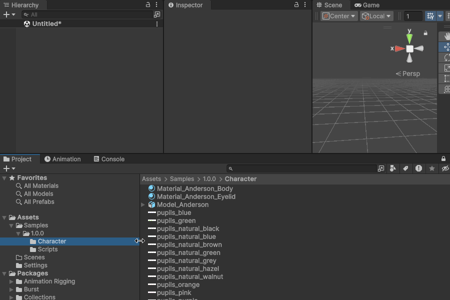 Samples/Character/Model_Anderson.fbx- Includes a few expressions and pupil colors.