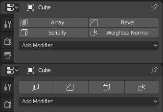 Shows buttons/icons with favorite modifiers on top of the Modifier Stack.