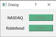 $ python KStock.pyWhen this is run, a test function is also run. This looks for a proper connection to Robinhood and NASDAQ: