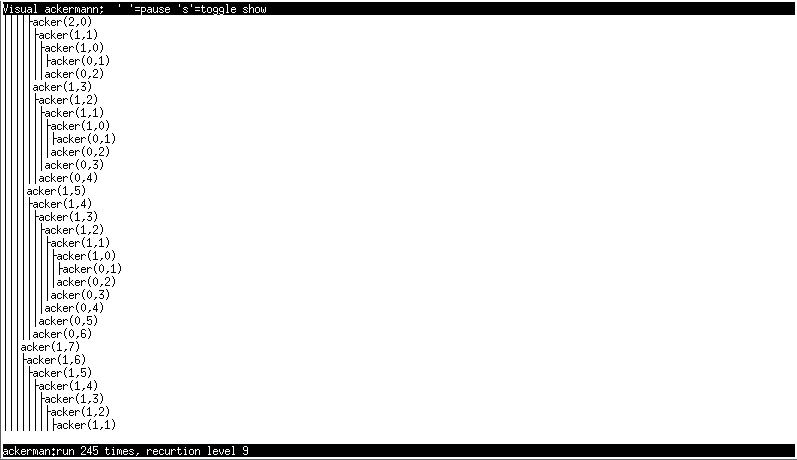 This is a program to illustrate how the Ackermann function operates using ncurses