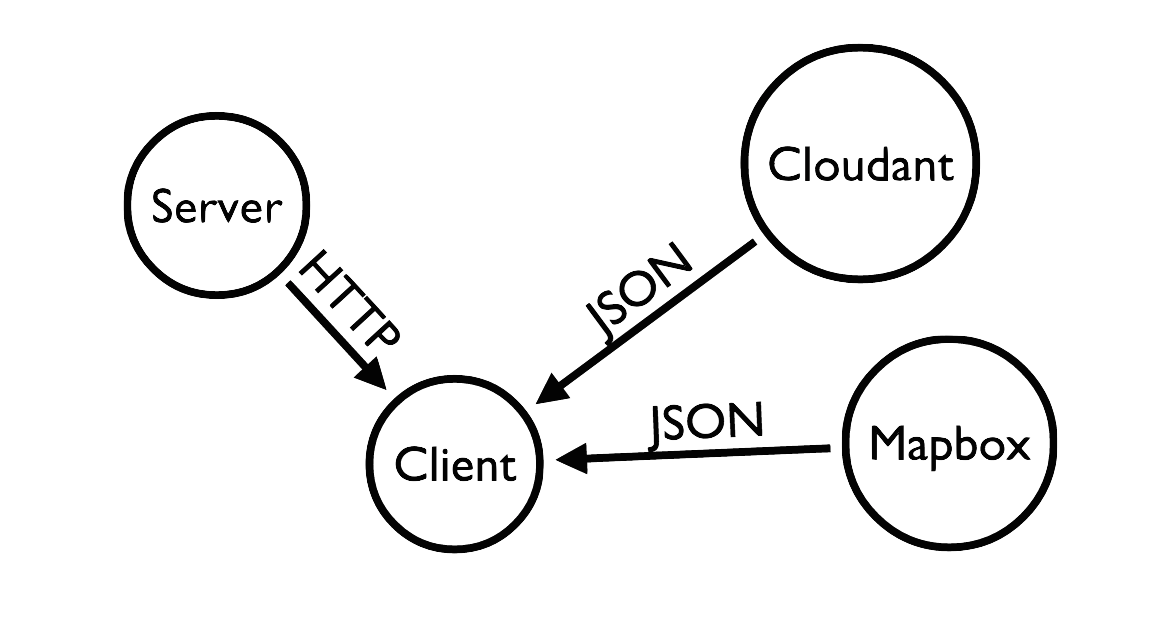 This project runs with any web server; it does not require the use of server-side technologies (like PHP, NodeJS, etc.). The project deploys HTML and Javascript files via HTTP to the client's device. The client then requests a base map using JSONP from Mapbox and requests the points to display (again using JSONP) from Cloudant.