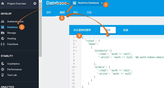 Copy the following rules to RTDB rules.