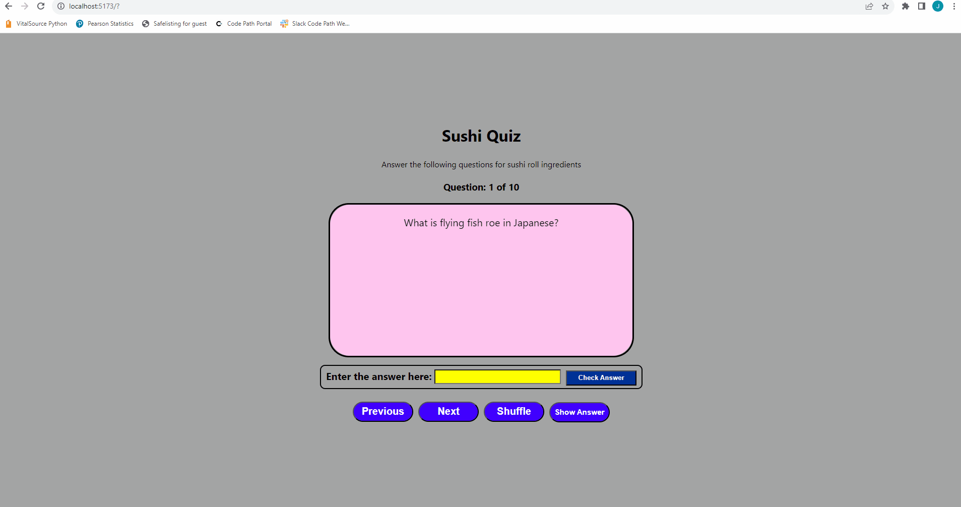 This web app: This app is to test your knowledge in sushi