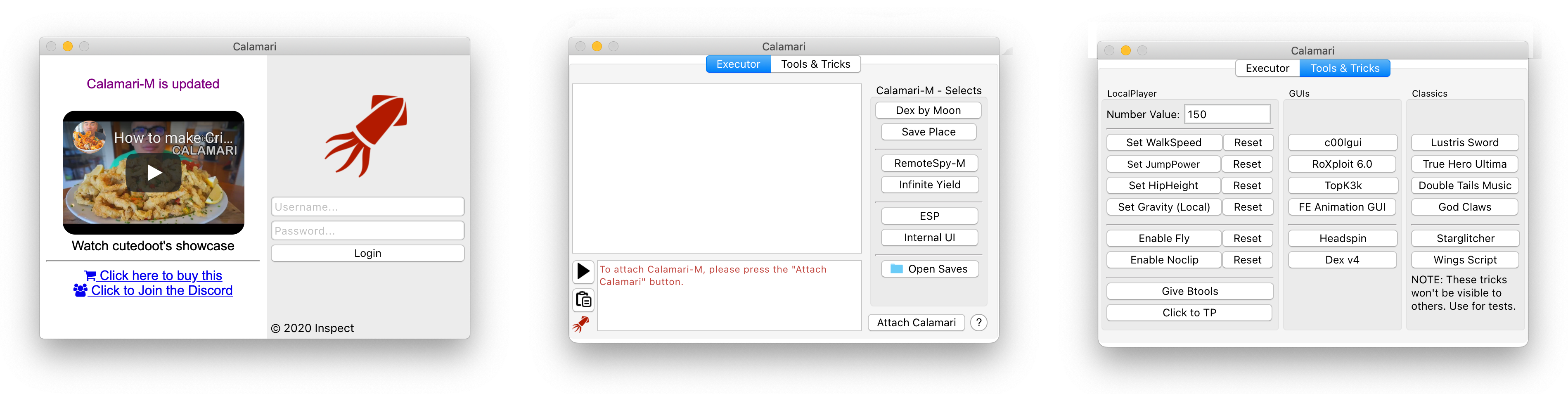 This is simply an alternative UI for Script-Ware M and doesn't send your credentials anywhere besides https://script-ware.com/ and the .DYLIB file downloaded by SW-M. Cali-Ware uses the same code for authentication as SW-M.