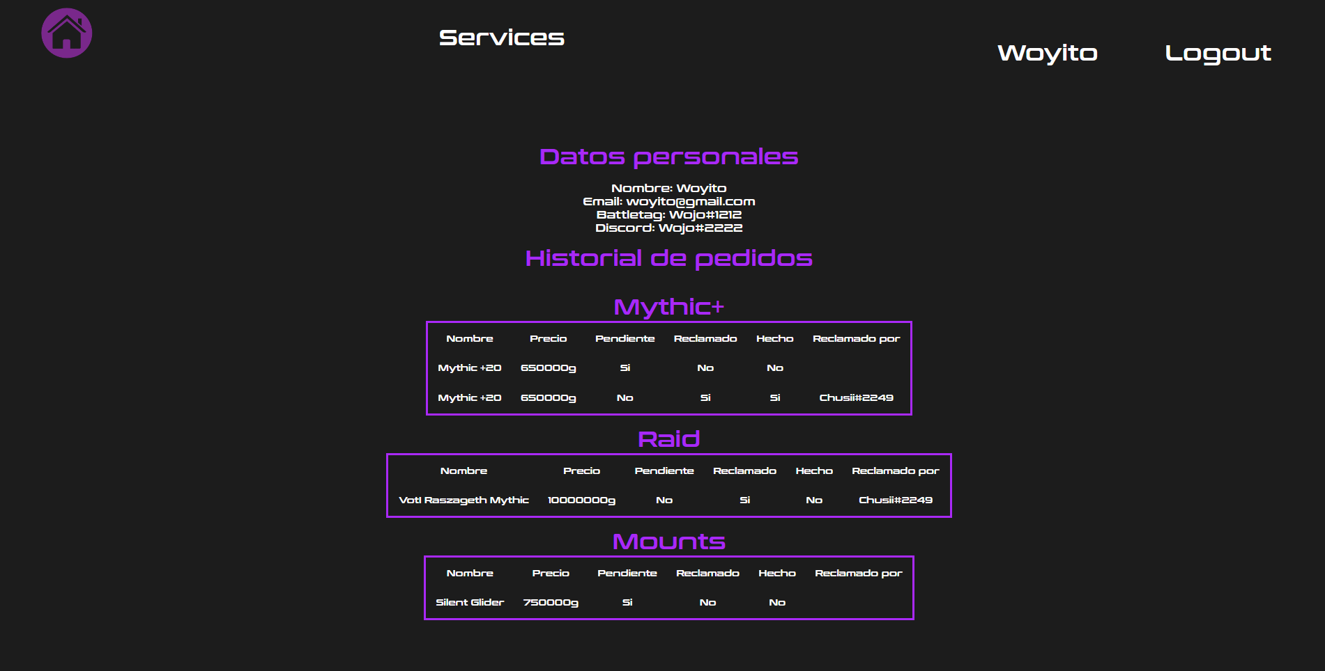 • Este proyecto es la creacion del Frontend de una web de venta de diversos servicios para el videojuego "World of Warcraft", usando como moneda de cambio el propio oro dentro del juego, el fin de este proyecto es meramente educativo pero no se descarta en un futuro que salga a la luz, dado que no hay ningun tipo de beneficio lucrativo.