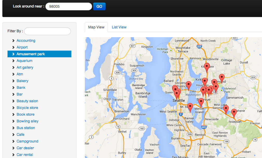 It'll be a simple application using Google maps API to load the location service and find the nearest ATM,Bar,Hotels, Pubs ..etc. Google is already providing this information on their Google+ page –– but as I said earlier, we'll be mimicking the same for our learning purpose.