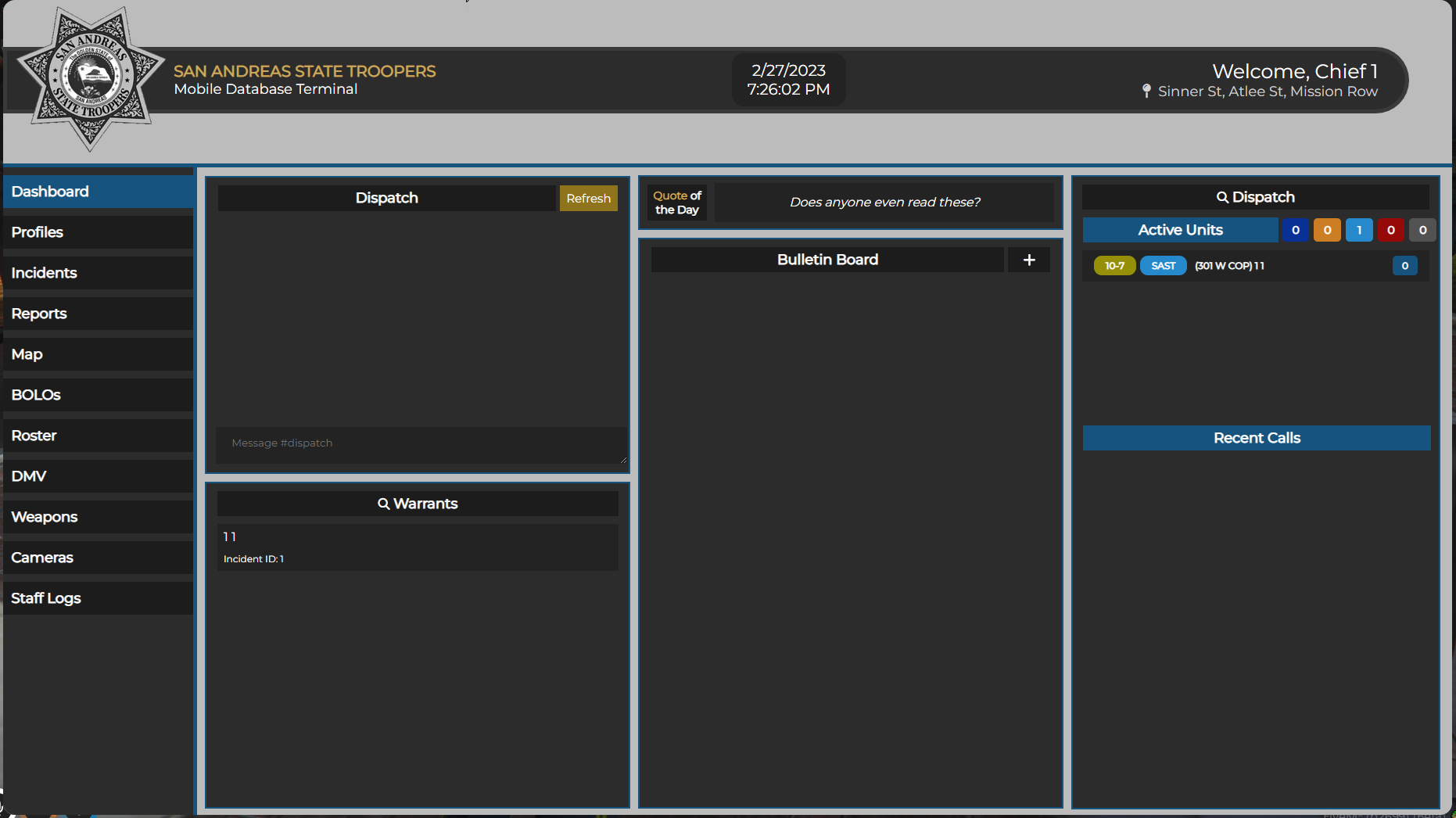 - Triggers when officers Toggle Duty from inside the mdt.