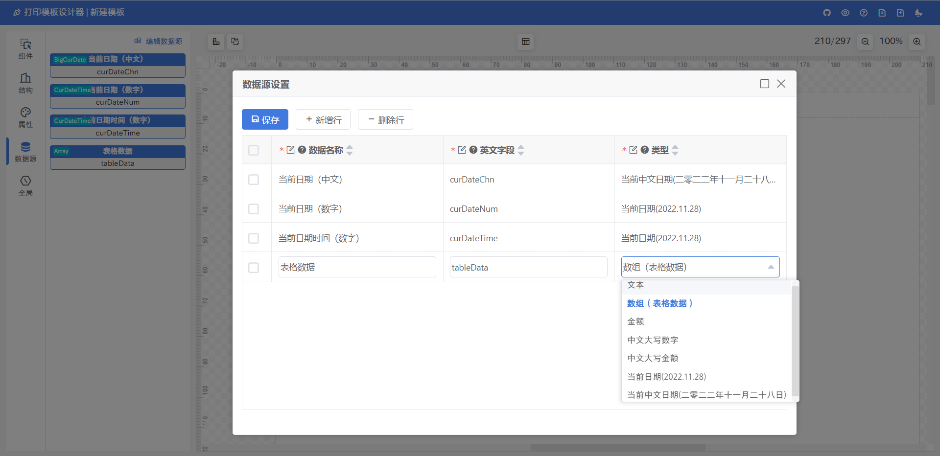 设计器中的组件数据 |