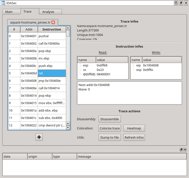 - Loading execution traces generated by Pinsec