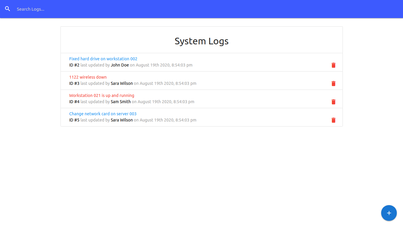 The idea of the project is that, it's an internal app for an IT-department, within the organization where people can add logs regarding problems that occur and are fixed within the system, also they can add technicians, search logs etc.