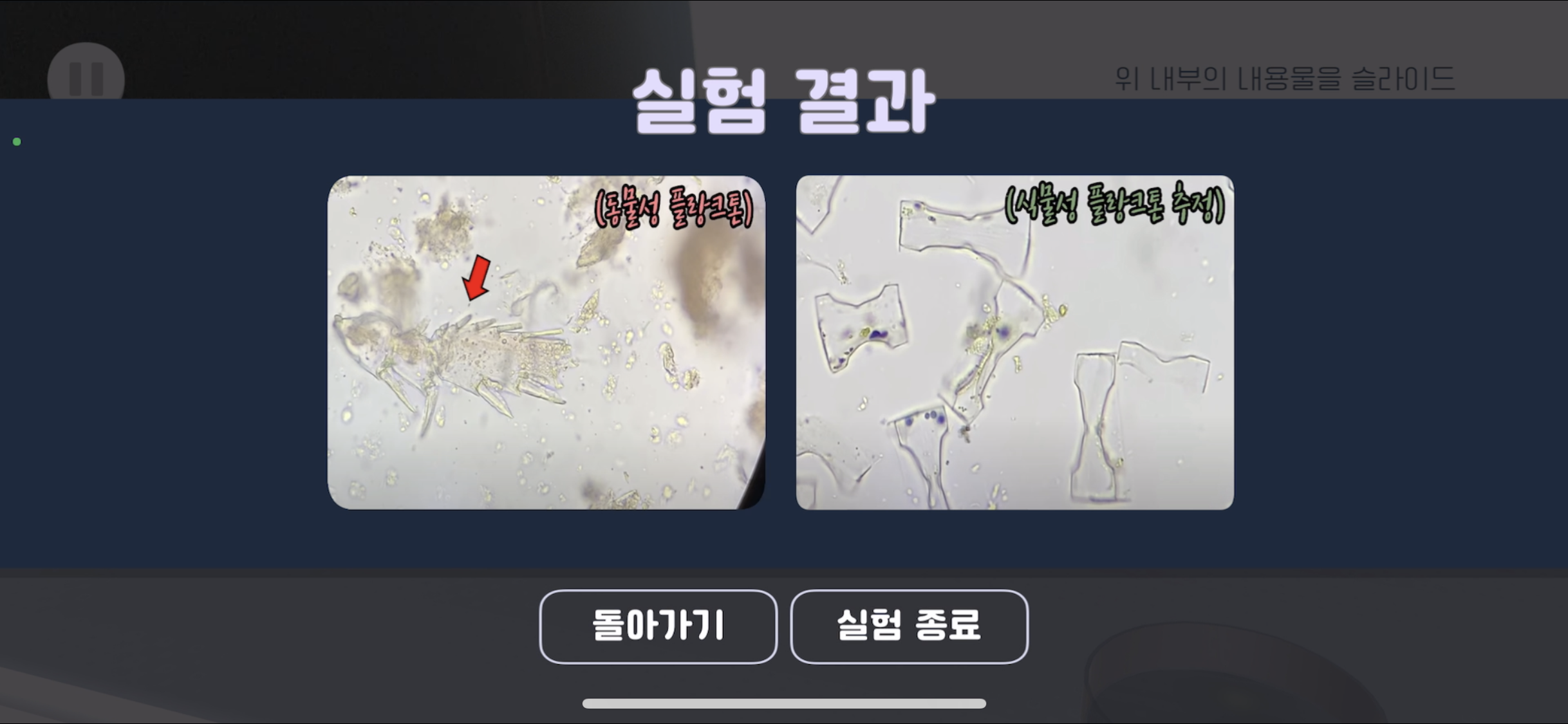 현미경을 터치해 실제 결과 화면을 볼 수 있다