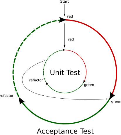 Behavior Driven Development is top-down testing. g. It can be done either before or after writing code, so BDD can be done as part of TDD, or as backfilling. BDD is about writing a feature (a fancy curl request written in Ruby) and having that initiate an error (a routing error), then writing a unit that shows the same error (a routing unit test), then writing the code that passes it, then running the feature, seeing a new error, etc...