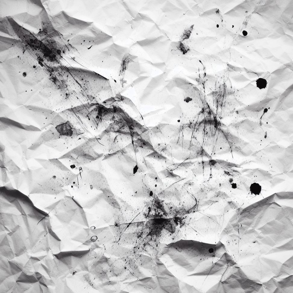 Prompt: white paper with many ink marks, crinkles, wrinkles, and imperfections and variable lighting