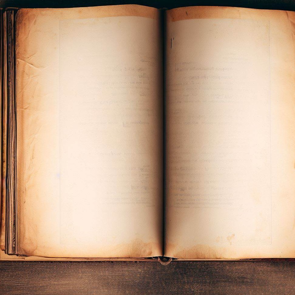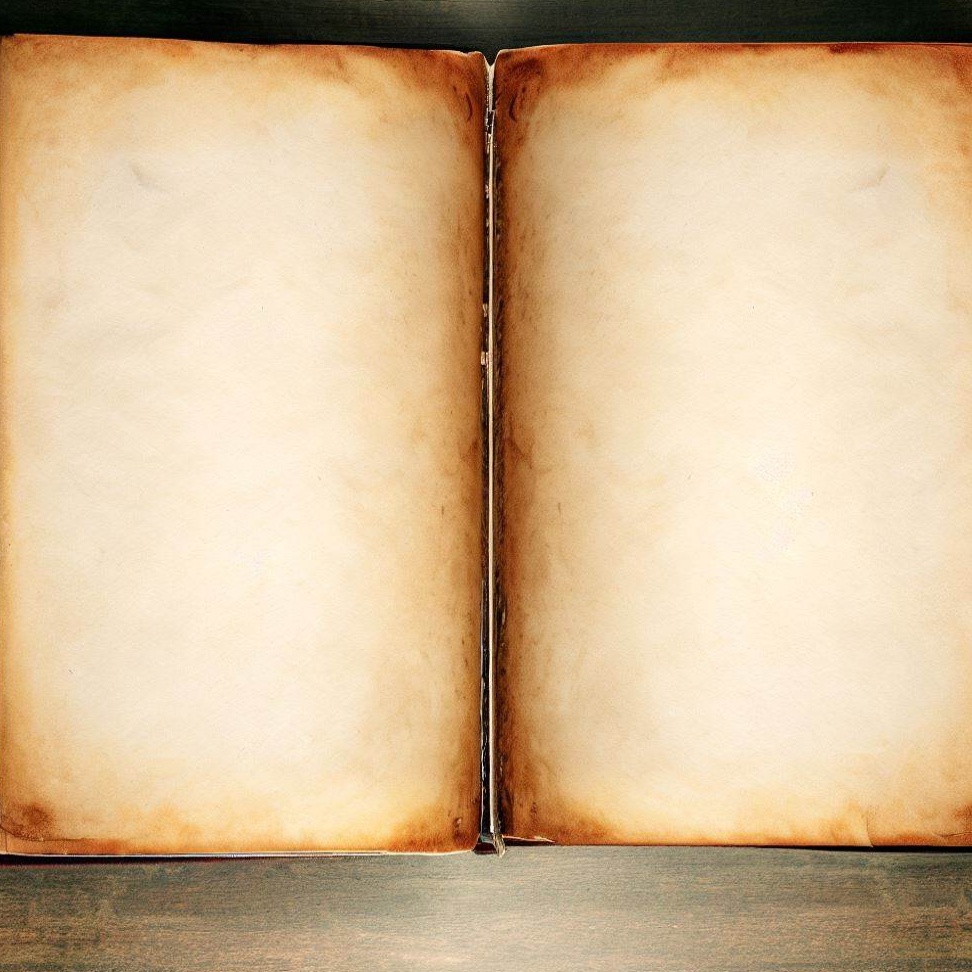 Prompt: aerial view of 2 blank pages of old open book, full frame