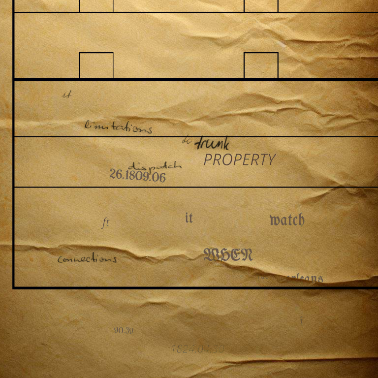 Prompt: aged blank letter with subtle imprints of text from its other side, as if the ink permeated through the paper; full frame