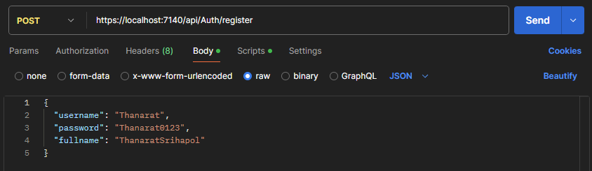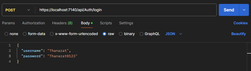 โปรเจคนี้ได้ Implement การสร้าง JWT (JSON Web Tokens) ในการเก็บข้อมูล Login ของผู้ใช้