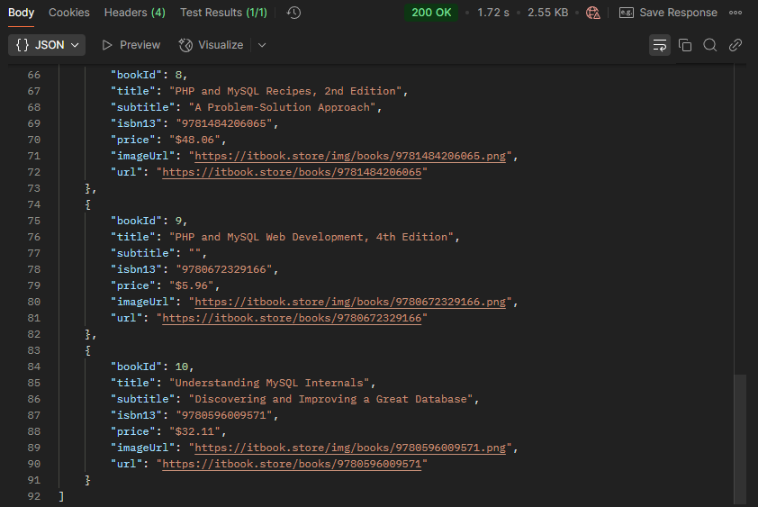 Get the list of books from https://api.itbook.store/1.0/search/mysql and returns the list sorted to alphabet (a-z) by book title