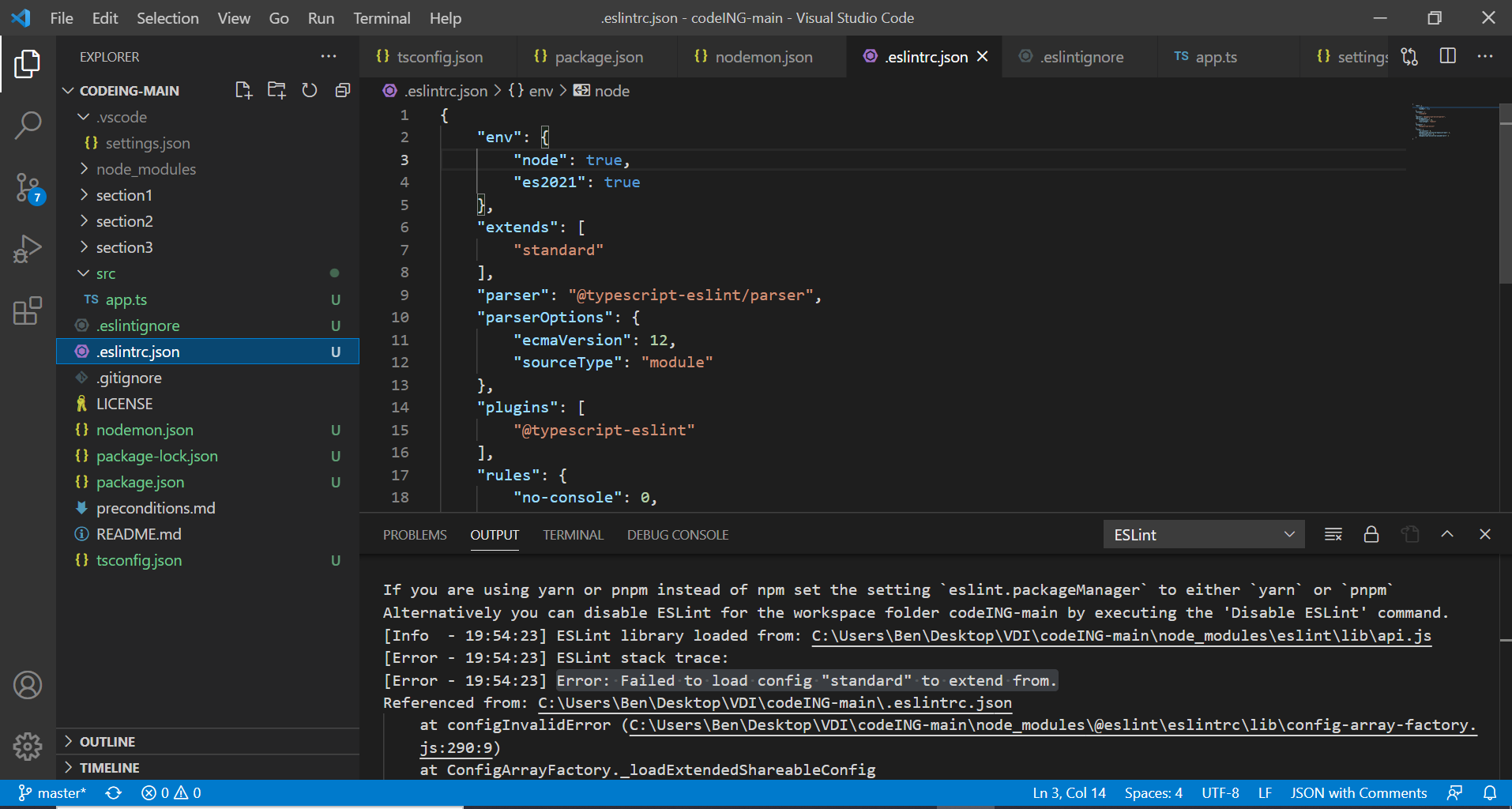 Vielen Dank für die Einführung! Ich konnte unter localhost:5000 die "Hallo Welt" Seite vorfinden, jedoch hatte ich zunächst Probleme eslint zu laden und habe es dann mit -g global gesetzt. Dann war das Verbotszeichen (unten rechts) zu erkennen und ich habe lediglich auf "Allow" und nicht auf "Allow all and everywhere" geklickt. War das falsch? Jetzt bekomme ich einen Error mit "standard".