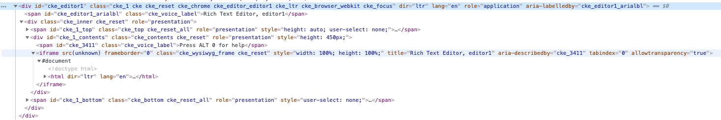 } );It will be useful if one can just pass the class/id of the editor top wrapper (e.g. #cke_editor1 in the above case) and it will simply work.
