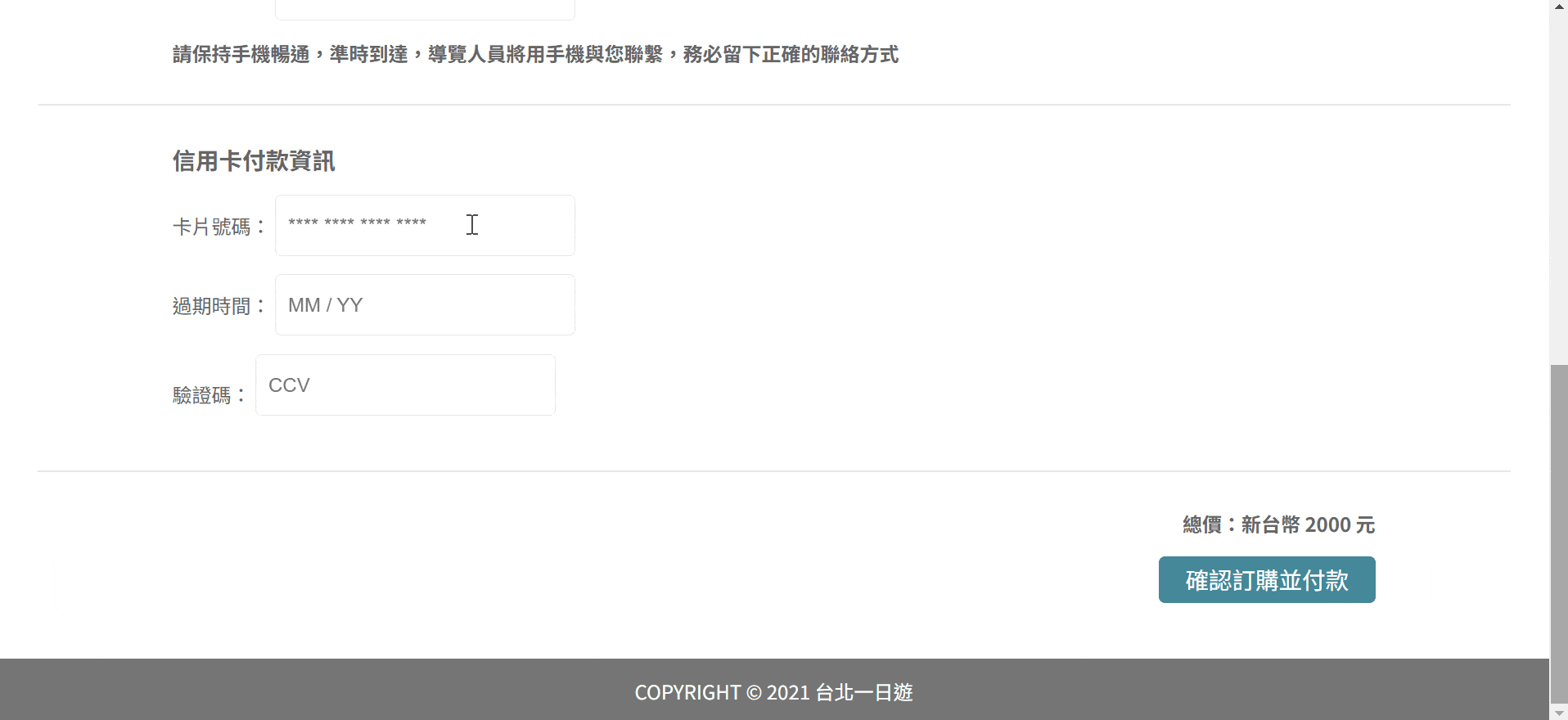 | 卡號 | 有效年月 | CCV |