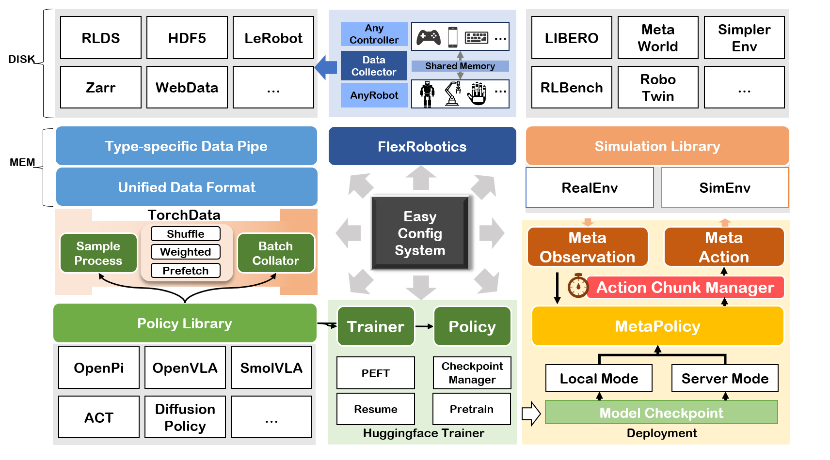 IL-Studio is an open-source repository that lets researchers and engineers jump-start imitation-learning experiments on popular robot manipulation benchmarks with minimal friction. The entire training, evaluation, and deployment pipeline has been carefully modularized so that you can swap-in your own policy, environment, or dataset without touching the rest of the stack.