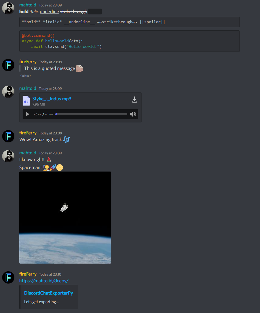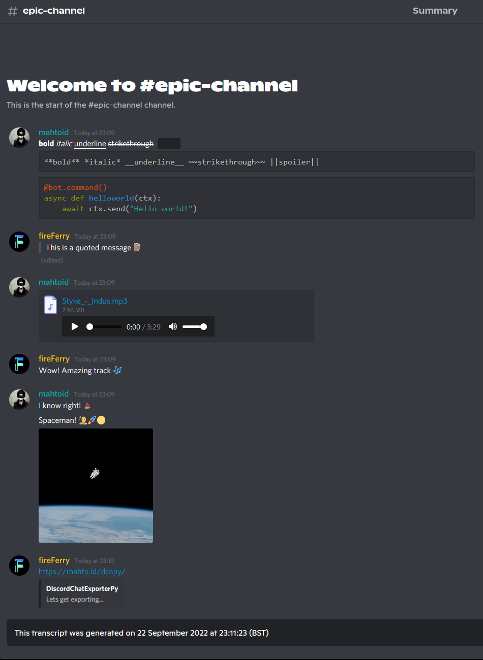 await ctx.send(file=transcript_file)This Package was Imported from the Original DiscordChatExporterPy.