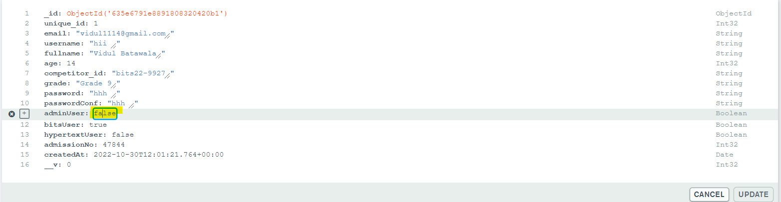 When You Hover Over The User Data Some Buttons Will Pop-Up As Seen On The Image Above. Click The Button That Has The Pencil Icon And Click On The Text False That Is Infront Of The Text adminUser