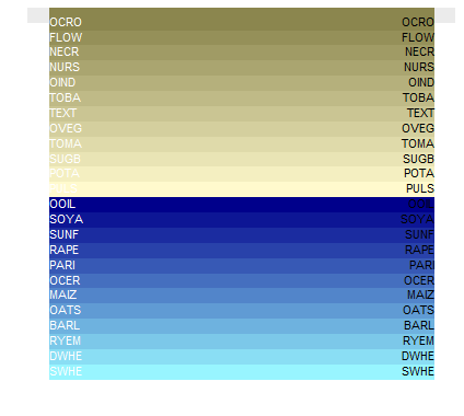 the function setcolors() identifies fixed colors for each CAPRI element (such as crops) so that all plots get an equal look. The function has not yet set colors for all possible items and needs to be extended as the needs arise.