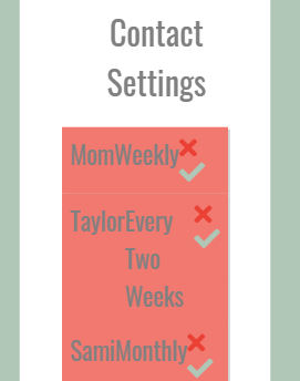 Need to set a condition in script.js to set the display as none for each frequency section in each list item (contact).