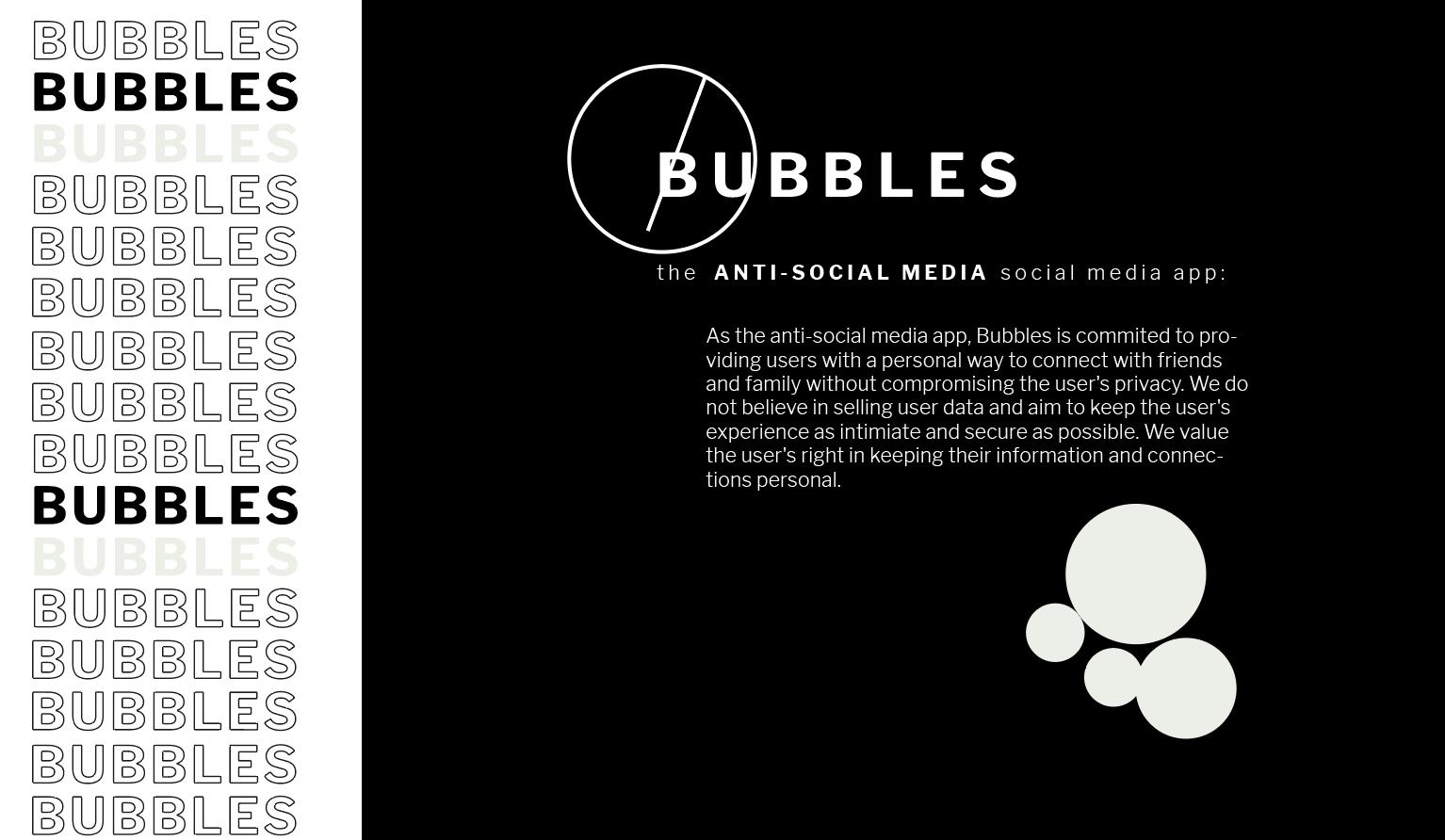 o Unlike other social media applications, Bubbles emphasize and stress the importance of User privacy.