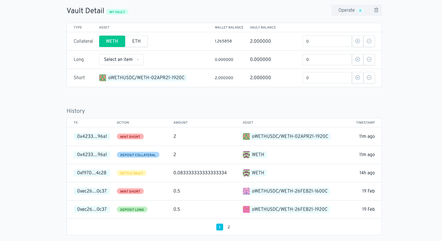 Manage your short position directly with the protocol: Adjust collateral, mint / burn oTokens, or create spreads!