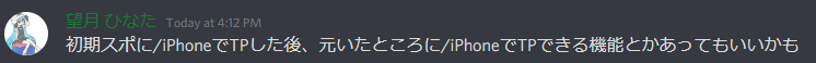 初期スポに/iPhoneでTPした後、元いたところに/iPhoneでTPできる機能 #130