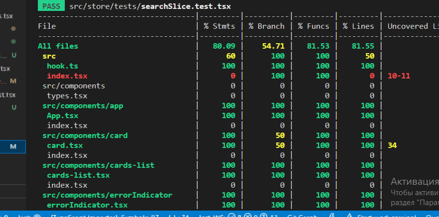 [+] Test coverage for the whole app should be not less than 80%. (= 80.09%)
