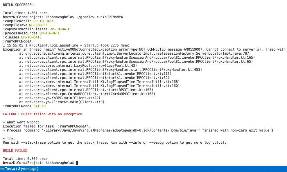 @ToniyaSundaram Not able to run `./gradlew runYoRPCNodeA`